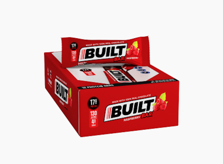 - Nutrition: This is just one of their normal bars, but with 20 extra calories (150) and 1g extra sugar (5g). Even a downgrade in Built's macros is still better than 99% of the market. 33/35.